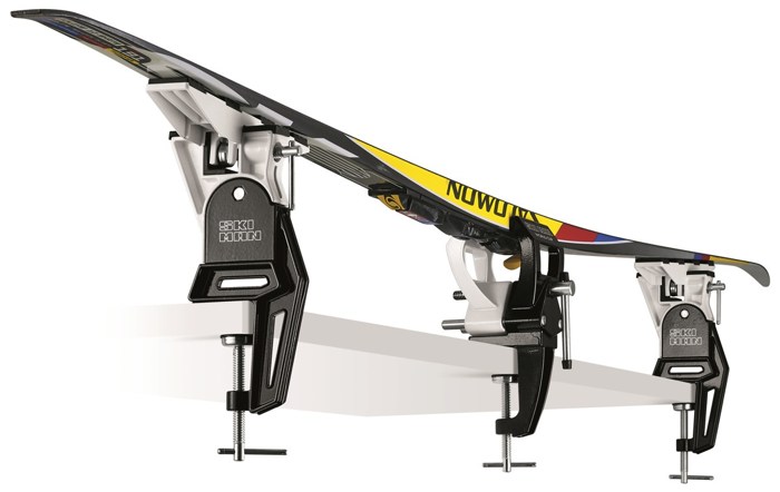 Narty zjazdowe w tym modelu możemy zamocować na trzy sposoby (specjalne gumowe podkładki z wypustkami uniemożliwiają przesuwanie się narty w imadle):