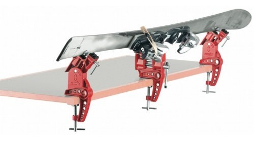Tak wygląda mocowanie deski snowboardowej dzięki adapterowi w imadle World Cup Ski Vise SWIX.