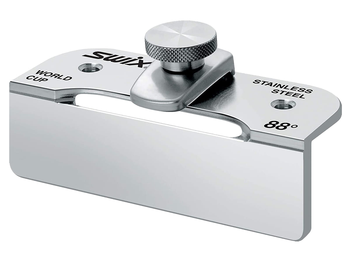 Model Side File Guide World Cup Pro 88' został wykonany z grubej, polerowanej stali, cechuje go bardzo dobre i precyzyjne wykonanie. Materiał z którego jest wykonany kątownik gwarantuje, że posłuży nam przez długie lata serwisu. W środkowej części kątownika jest umieszczony specjalny podłużny otwór mający za zadanie odprowadzić jakieś zabłąkane wióry powstające podczas ostrzenia.
