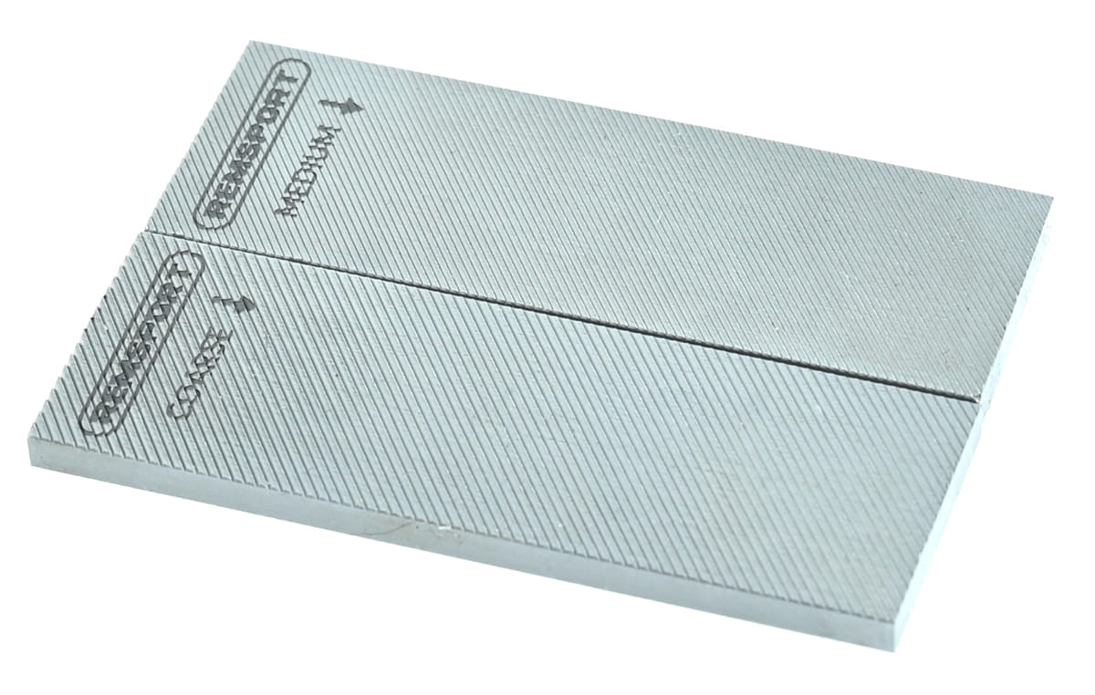Oferta Sklepu REMSPORT: Pilnik typu Combi, wyprodukowany dla firmy REMSPORT, jest to model Double Cut Coarse-Medium 70mm (numer katalogowy REM01387), o długości 70mm (na zdjęciu przykładowo są pokazane dwie gradacje pilnika, w tej ofercie oferowany jest jeden pilnik dwustronny).