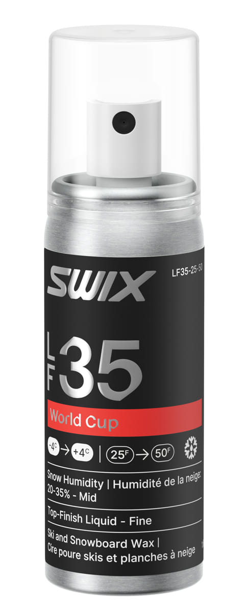 Oferta Sklepu REMSPORT: Profesjonalny smar w spray dla zawodników i nie tylko z nowej serii World Cup, produkt norweskiej firmy SWIX, jest to model LF35 Fine Mid Liquide (numer katalogowy LF35-25-50).