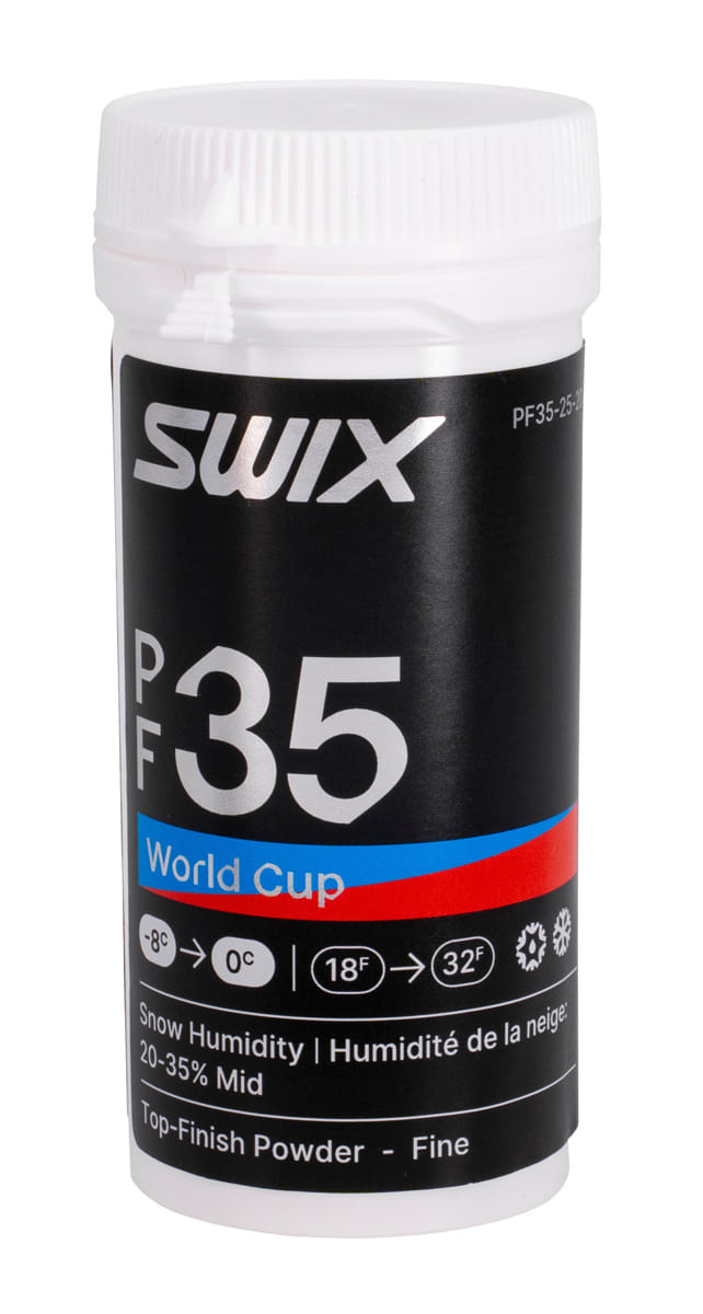 Oferta Sklepu REMSPORT: Profesjonalny smar w proszku dla zawodników i nie tylko z nowej serii World Cup, produkt norweskiej firmy SWIX, jest to model PF35 Fine Mid Powder (numer katalogowy PF35-25-20).