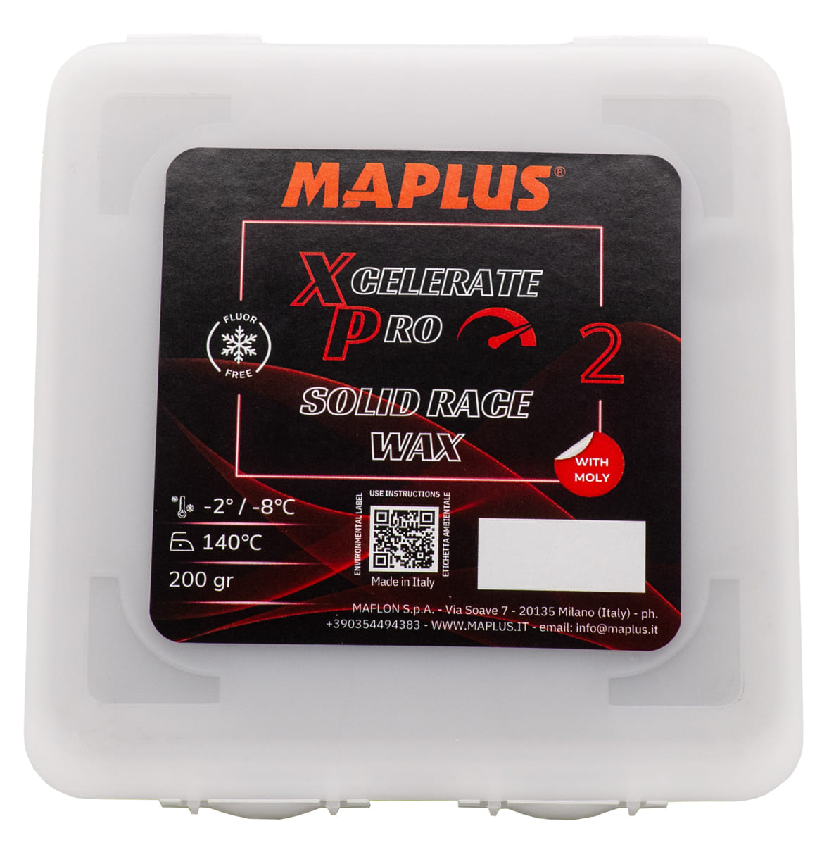 Oferta Sklepu REMSPORT: Profesjonalny smar w kostce dla zawodników z nowej serii Xcelerate Pro Racing Wax, produkt włoskiej firmy MAPLUS, jest to model Xcelerate Pro 2 (numer katalogowy MFF0102), w dużej kostce o wadze 200g.
