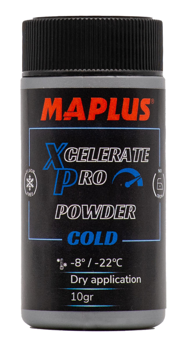 Oferta Sklepu REMSPORT: Profesjonalny smar w proszku dla zawodników z nowej serii Xcelerate Pro Racing Wax, produkt włoskiej firmy MAPLUS, jest to model Xcelerate Pro Powder Cold (numer katalogowy MFF0240).