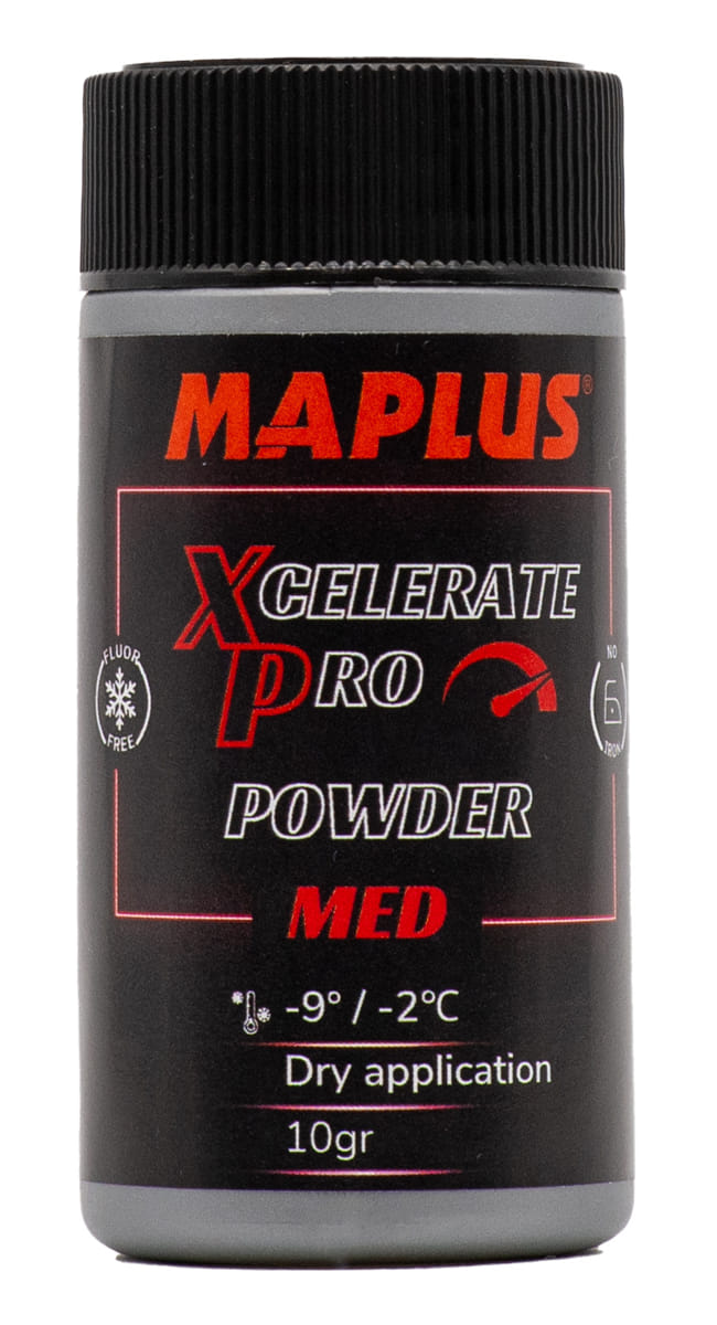 Oferta Sklepu REMSPORT: Profesjonalny smar w proszku dla zawodników z nowej serii Xcelerate Pro Racing Wax, produkt włoskiej firmy MAPLUS, jest to model Xcelerate Pro Powder Med (numer katalogowy MFF0241).