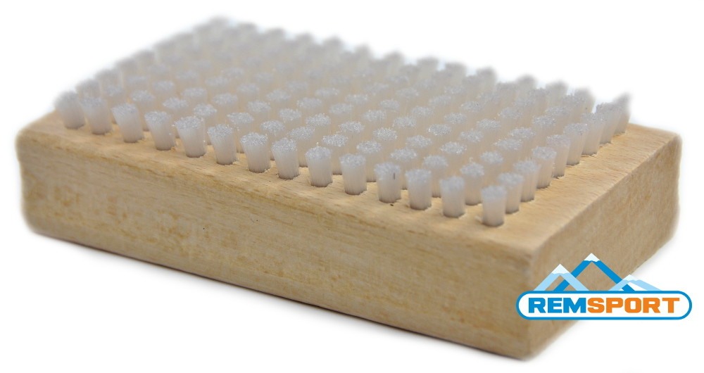 Oferta Sklepu REMSPORT: Szczotka prostokątna z nylonowym średnio twardym włosiem, produkt włoskiej firmy SOLDA, jest to model Nylon Brush (numer katalogowy 1040), polecana do serwisu nart zjazdowych, nart biegowych lub desek snowboardowych.