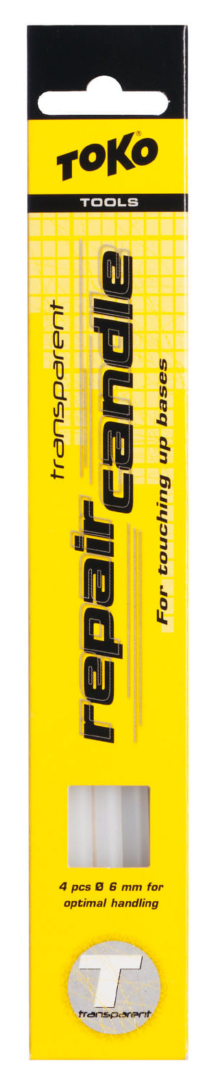 Oferta Sklepu REMSPORT: Zestaw pałeczek kofiksowych do naprawy ślizgu, produkt szwajcarskiej firmy TOKO, jest to model Repair Candle Transparent 4pcs (numer katalogowy 5543041), w kolorze białym o średnicy 6mm i długości około 187mm.