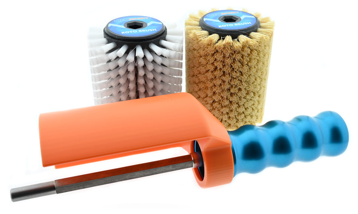 Oferta Sklepu REMSPORT: Zestaw szczotek obrotowych o szerokości 10cm, wyprodukowanych dla firmy REMSPORT, jest to model Roto Kit II Natural SE 10cm (numer katalogowy REM01592), przeznaczony do serwisu nart zjazdowych, biegowych lub desek snowboardowych.