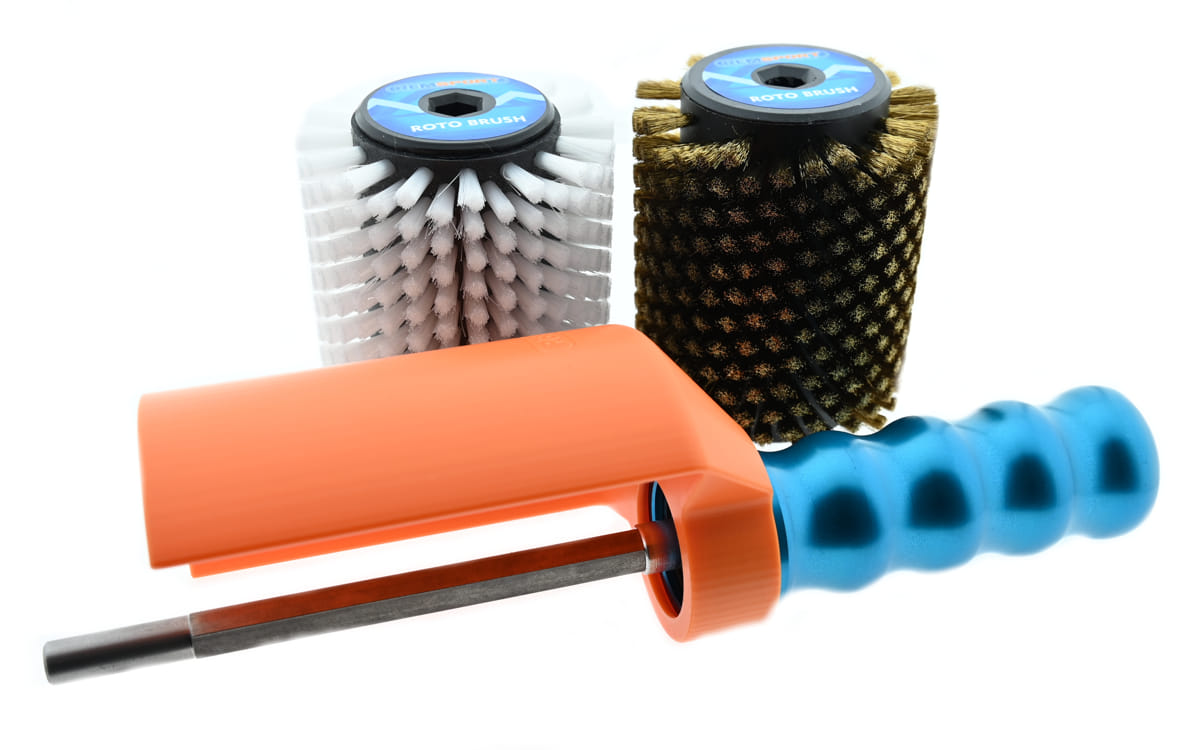Oferta Sklepu REMSPORT: Zestaw szczotek obrotowych o szerokości 10cm, wyprodukowanych dla firmy REMSPORT, jest to model Roto Kit II SE 10cm (numer katalogowy REM01594), przeznaczony do serwisu nart zjazdowych, biegowych lub desek snowboardowych.