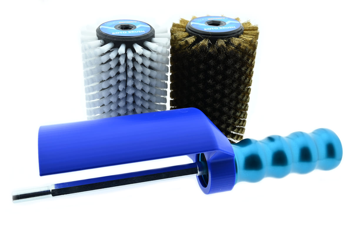 Oferta Sklepu REMSPORT: Zestaw szczotek obrotowych o szerokości 12cm, wyprodukowanych dla firmy REMSPORT, jest to model Roto Kit II SE 12cm (numer katalogowy REM01598), przeznaczony do serwisu nart zjazdowych, biegowych lub desek snowboardowych.