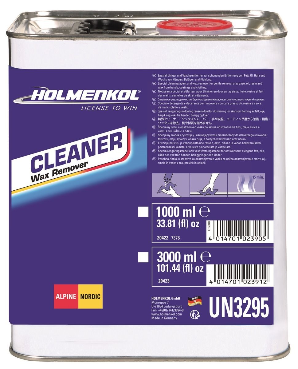 Oferta Sklepu REMSPORT: Zmywacz smarów do ślizgów nart zjazdowych, nart biegowych i desek snowboardowych, produkt niemieckiej firmy HOLMENKOL, jest to model Cleaner Wax Remover (numer katalogowy 20423) w płynie o bardzo dużej pojemności 3000ml.